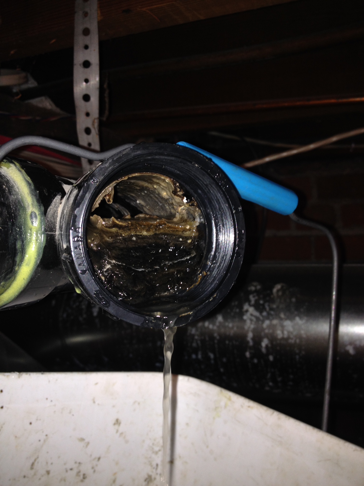 CALLAWAY Plumbing and Drains Ltd. attended a call for a blocked kitchen sink, the 2″ ABS branch was completely blocked with sludge and grease. The kitchen sink drain was installed with poor grade(slope) and in the section with the clean out was even back graded(sloped the wrong direction). We drain cleaned the branch line then re graded the line to code requirements to then have the kitchen sink draining like new again. All sanitary drainage is required to have a 2% or 1/4″ per foot of grade(slope) as required by the BC Plumbing Code and the National Plumbing Code. With CALLAWAY Plumbing and Drains Ltd. you get fast, clean, friendly, and professional service everytime!