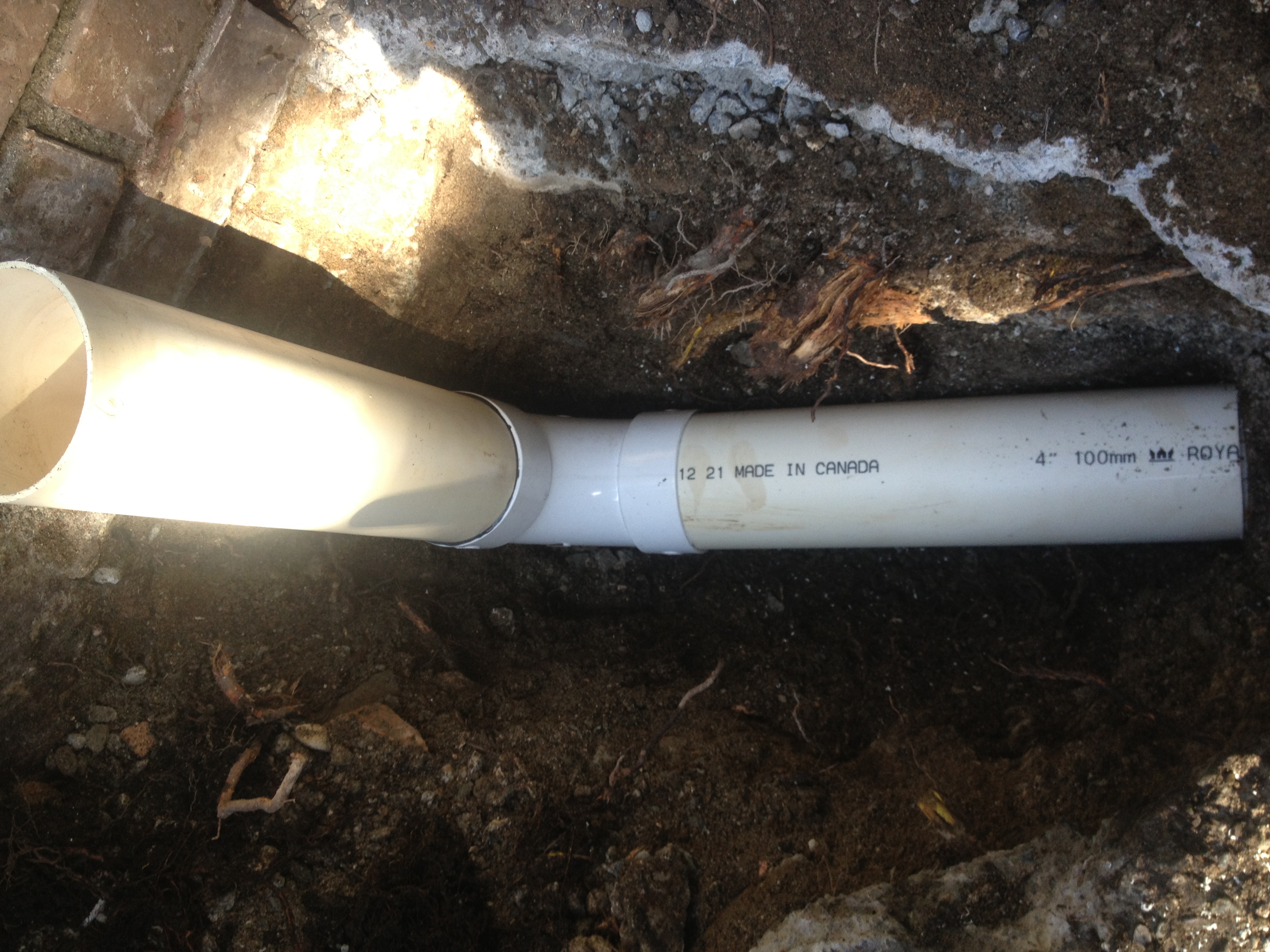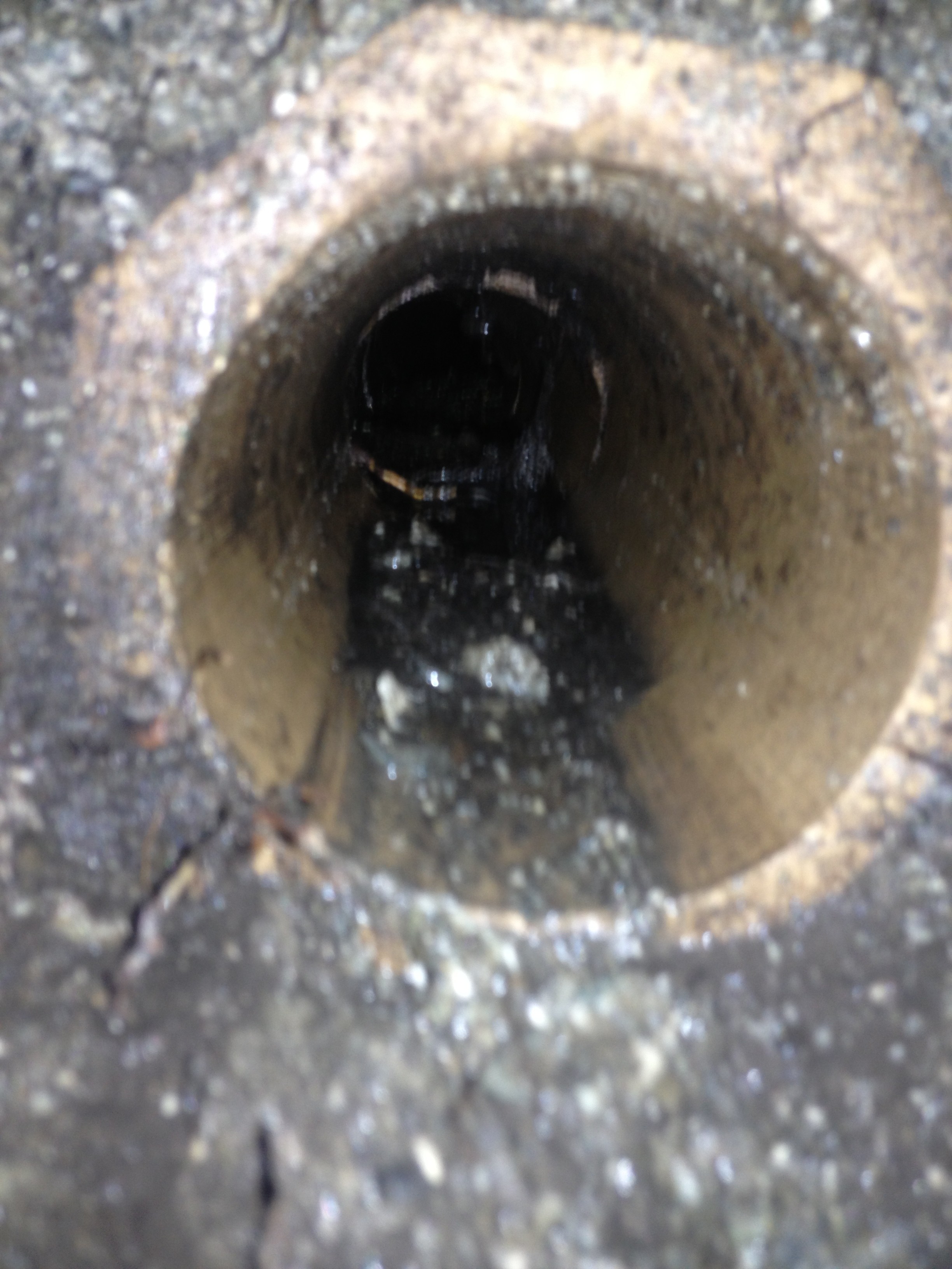 This is a picture of how a drain tile should look after cleaned properly with a power snake and flushed with water. Now that CALLAWAY Plumbing and Drains ltd. has cleaned this perimeter drain system the rain water it receives from the downspouts flows properly, and no risk of flooding into building.