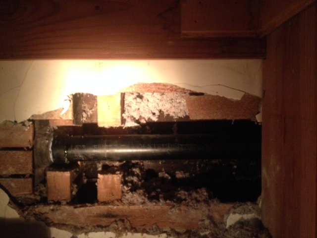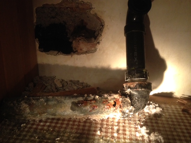 - steel waste arm leaking into wall